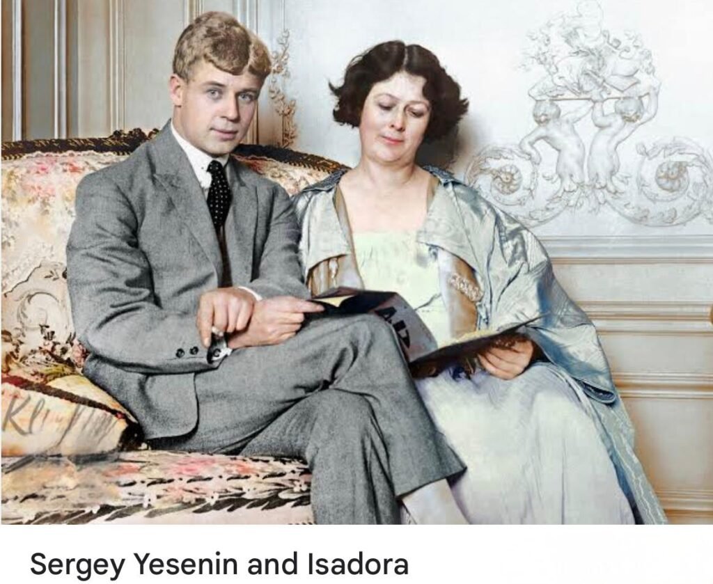ईज़ाडोरा का आख़िरी प्रेमी सर्जी एसिनिन जो कि एक कवि था और ईज़ाडोरा से उम्र में काफ़ी छोटा था, विवाह के ख़िलाफ़ अपनी दृढ़ मान्यताओं के बावजूद ईज़ाडोरा ने उससे विवाह करने का निर्णय लिया। कई आलोचकों की राय में एसिनिन ने ईज़ाडोरा डंकन से नहीं बल्कि उसकी प्रसिद्धि से विवाह किया था..जहाँ भी जाता उसको एसिनिंन-ईज़ाडोरा , ईज़ाडोरा-एसिनिन सुनना अच्छा लगता था। वहीं ईज़ाडोरा ने भी एक इंटरव्यू में ये स्वीकार कि उसने एसिनिन से विवाह इसलिए किया क्यूँकि वो अस्वस्थ था और उसको एक इलाज की ज़रूरत थी,दूसरे वो एक कवि था और ईज़ाडोरा यूरोप और अमेरिका की यात्रा के माध्यम से उसके सामने रचनात्मकता के नए क्षितिज खोलना चाहती थी, विवाह का प्रमाणपत्र एसिनिन को को अपने साथ यूरोप और अमेरिका ले जाने के लिए, रूसी सरकार की अनुमति प्राप्त करने के लिए ज़रूरी था। अपने अतिउत्साही,आत्मकेंद्रित,और ऐश्वर्यपूर्ण जीवन के तहत एसिनिन नशे में डूब गया और ज़्यादा शराब पीने की वजह से उसकी मृत्यु हो गई और एसिनिन की मृत्यु का इल्ज़ाम भी ईज़ाडोरा डंकन लगा कि ईज़ाडोरा की वजह से एसिनिन नशे में डूब गया और बर्बाद हो गया। एसिनिन की मृत्यु के बाद ईज़ाडोरा अवसाद में चली गई और बहुत समय तक इस दुख में मरती रही।